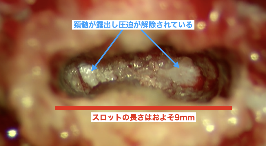 頚髄の圧迫が解除されている様子(術者が見ている手術用顕微鏡の画像)