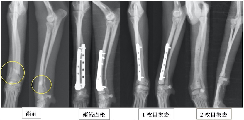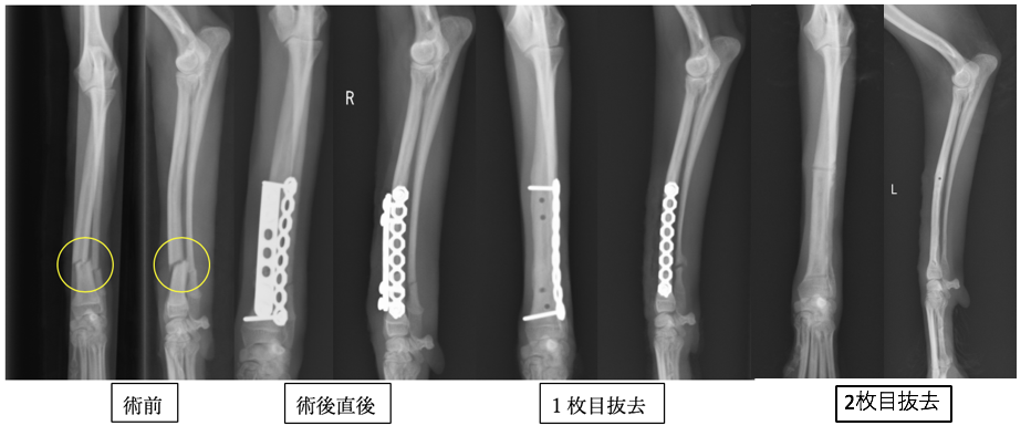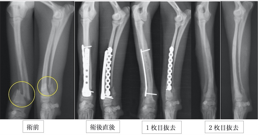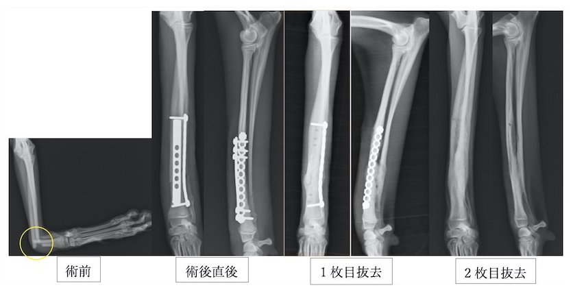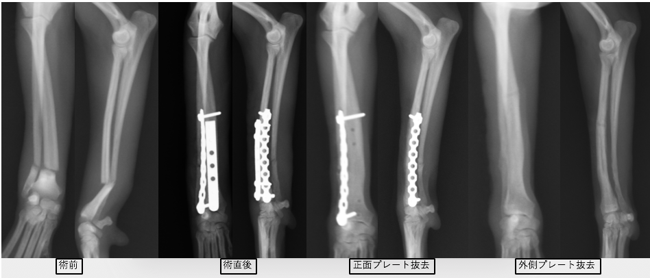 この子もプレートが破綻して2回めの手術をしているため、プレートが長くなっています。