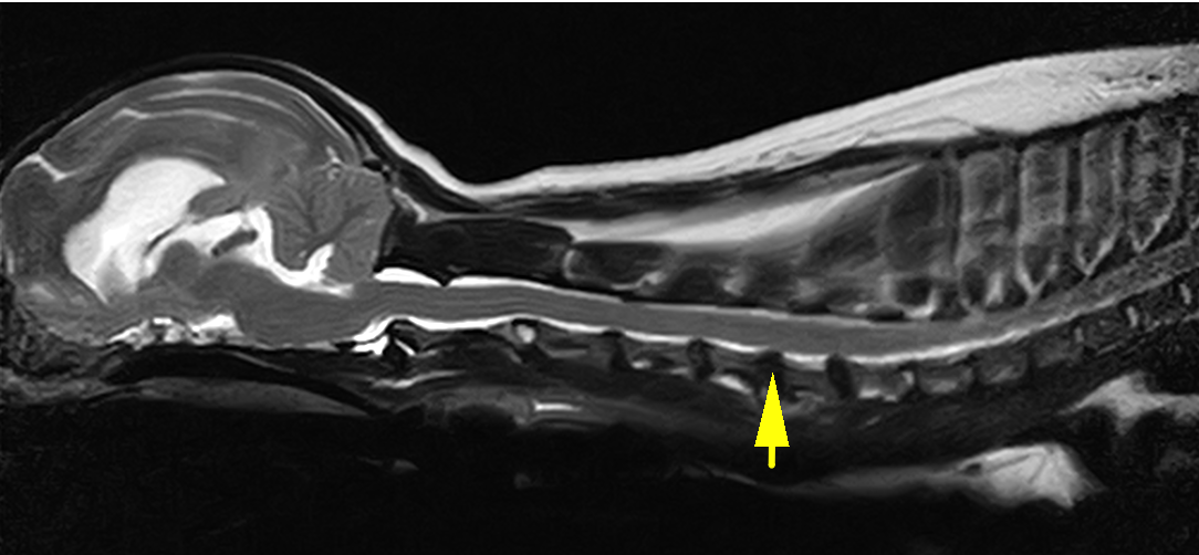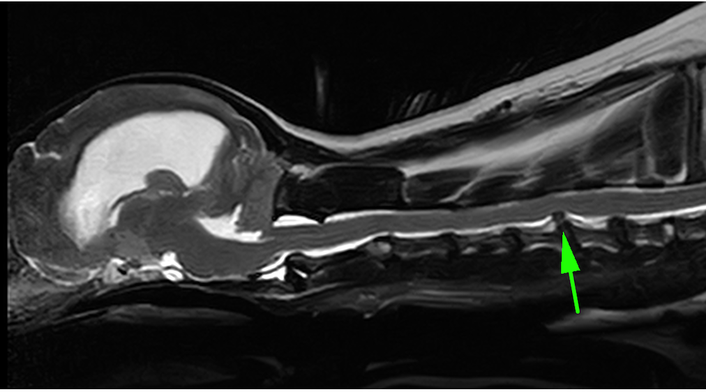 頚部椎間板ヘルニアは頚椎という首の骨をつなぐ椎間板物質が背側に飛び出してしまうことで、そこの神経を圧迫し、疼痛や麻痺を引き起こす疾患です。診断は触診や神経学的検査、レントゲン検査に加え、MRI検査が必須となります。