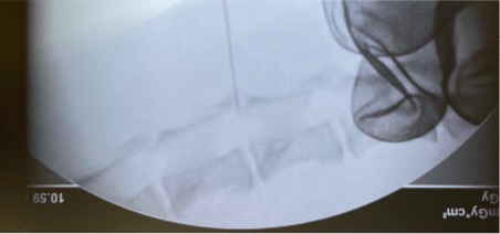 Cアーム撮影下での髄液採取
